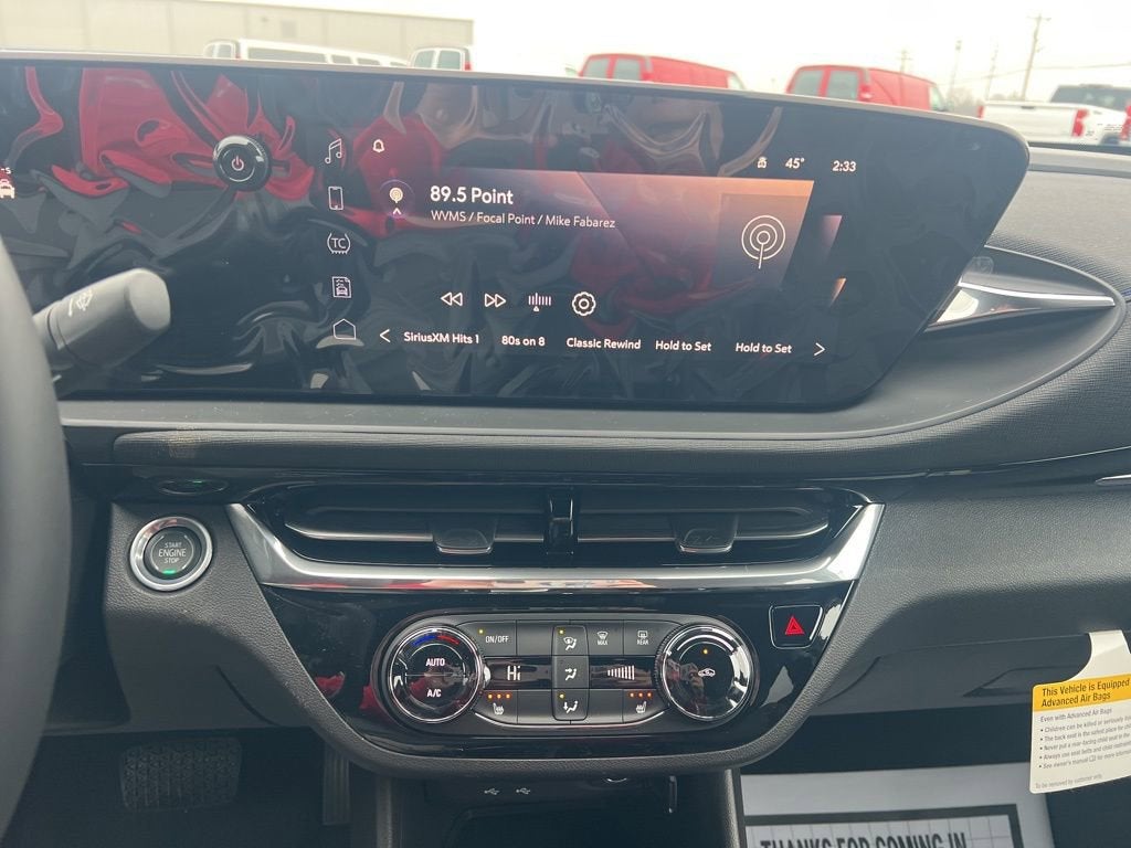 Ocean Blue Metallic 2026 Buick Envista Sport Touring FWD 6-Speed Automatic ECOTEC 1.2L Turbo 2026 Buick Envista Sport Touring Ocean Blue Metallic, 2 USB Ports (1 Type-A, 1 Type-C), 2-Way Power Driver Lumbar Control, 3.50 Final Drive Axle Ratio, 4-Way Manual Front Passenger Seat Adjuster, 4-Wheel Disc Brakes, 6 Speakers, 6-Way Manual Driver Seat Adjuster, 8-Way Power Driver Seat Adjuster, ABS brakes, Adaptive Cruise Control, Advanced Safety Package, Air Conditioning, Alloy wheels, AM/FM radio: SiriusXM, Auto High-beam Headlights, Automatic temperature control, Brake assist, Bumpers: body-color, Compass, Convenience I Package, Delay-off headlights, Driver door bin, Driver vanity mirror, Dual front impact airbags, Dual front side impact airbags, Electronic Stability Control, Emergency communication system: OnStar, Exterior Parking Camera Rear, Front anti-roll bar, Front Bucket Seats, Front Center Armrest, Front Doors Keyless Open, Front reading lights, Front wheel independent suspension, Fully automatic headlights, Heated door mirrors, Heated Driver and Front Passenger Seats, Heated Steering Wheel, Illuminated entry, Lane Change Alert with Side Blind Zone Alert, Leatherette Seat Trim, Low tire pressure warning, Occupant sensing airbag, Outside temperature display, Overhead airbag, Overhead console, Panic alarm, Passenger door bin, Passenger vanity mirror, Power door mirrors, Power steering, Power windows, Premium 6-Speaker Audio System Feature, Radio data system, Radio: AM/FM Stereo Audio System, Rear Cross Traffic Alert, Rear Parking Sensors, Rear window defroster, Remote keyless entry, Security system, SiriusXM Trial Subscription, Speed control, Split folding rear seat, Steering wheel mounted audio controls, Tachometer, Telescoping steering wheel, Tilt steering wheel, Traction control, Trip computer, Turn signal indicator mirrors, Variably intermittent wipers, Wheels: 18 Black Painted Aluminum, Wireless Apple CarPlay/Wireless Android Auto.