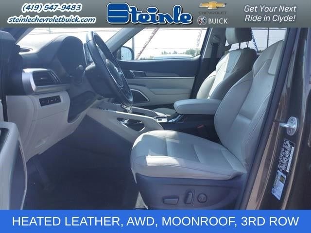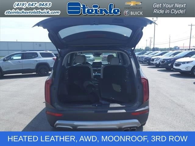 Dark Moss 2021 Kia Telluride S AWD 8-Speed Automatic 3.8L V6 DGI DOHC Dual CVVT CLEAN LOCAL TRADE, HEATED LEATHER, AWD, BLIND SPOT MONITORS, MOONROOF, 3RD ROW SEATING, ADAPTIVE CRUISE CONTROL, EZ LIFT TAILGATE, FRONT COLLISION MITIGATION, LANE KEEP ASSIST, POWER LIFTGATE, REMOTE START, ANDROID/APPLE CARPLAY, POWER LOCKS & WINDOWS, TILT & CRUISE, KEYLESS ENTRY & START, POWER SEAT, 3.648 Axle Ratio, 3rd row seats: split-bench, 4-Wheel Disc Brakes, 6 Speakers, ABS brakes, Air Conditioning, Alloy wheels, AM/FM radio: SiriusXM, Apple CarPlay & Android Auto, Brake assist, Bumpers: body-color, Carpeted Floor Mats, Delay-off headlights, Driver door bin, Driver vanity mirror, Dual front impact airbags, Dual front side impact airbags, Electronic Stability Control, Emergency communication system: 911 Connect, Four wheel independent suspension, Front anti-roll bar, Front Bucket Seats, Front Center Armrest, Front reading lights, Fully automatic headlights, Heated door mirrors, Heated Front Bucket Seats, Heated front seats, Illuminated entry, Knee airbag, Leather Shift Knob, Leather steering wheel, Low tire pressure warning, Occupant sensing airbag, Outside temperature display, Overhead airbag, Overhead console, Panic alarm, Passenger door bin, Passenger vanity mirror, Power door mirrors, Power driver seat, Power moonroof, Power steering, Power windows, Radio data system, Radio: AM/FM/SIRIUS Display Audio, Rear air conditioning, Rear anti-roll bar, Rear reading lights, Rear window defroster, Rear window wiper, Reclining 3rd row seat, Remote keyless entry, Roof rack: rails only, Security system, Smart Key w/ Push Button and Remote Start, SOFINO Leathertte Seat Trim, Speed control, Speed-sensing steering, Split folding rear seat, Spoiler, Steering wheel mounted audio controls, Tachometer, Telescoping steering wheel, Tilt steering wheel, Traction control, Trip computer, Turn signal indicator mirrors, Variably intermittent wipers, Wheels: 7.5 x 20 Machined Finish Alloy.