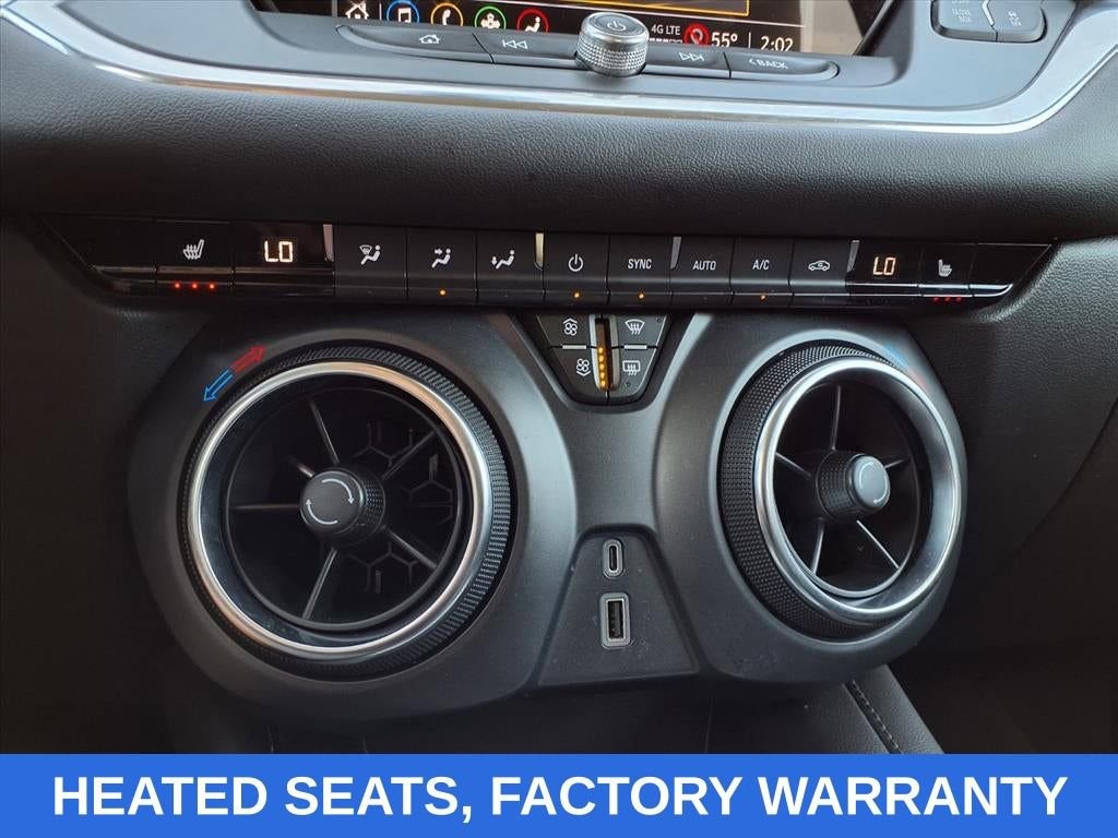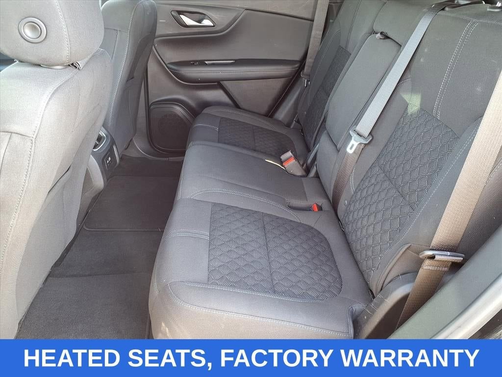 Black 2022 Chevrolet Blazer LT FWD 9-Speed Automatic with Overdrive 2.0L Turbocharged ONE OWNER, NO ACCIDENTS, FACTORY WARRANTY, HEATED SEATS, BLIND SPOT MONITORS, REAR CROSS TRAFFIC ALERT, FRONT COLLISION MITIGATION, LANE KEEP ASSIST, POWER LIFTGATE, REMOTE START, ANDROID/APPLE CARPLAY, POWER LOCKS & WINDOWS, TILT & CRUISE, KEYLESS ENTRY & START, POWER SEAT, 170 Amp Alternator, 3.47 Final Drive Axle Ratio, 4-Wheel Disc Brakes, 6 Speakers, 6-Speaker Audio System Feature, ABS brakes, Air Conditioning, Alloy wheels, AM/FM radio: SiriusXM, Apple CarPlay/Android Auto, Auto High-beam Headlights, Automatic temperature control, Black Grille Bar LPO), Black Grille Bar Package (LPO), Black Roof Rails, Brake assist, Bumpers: body-color, Chevy Black w/Black Bowtie Outline Wheel Center Caps, Child-Seat-Sensing Airbag, Compass, Convenience & Driver Confidence Package, Delay-off headlights, Driver door bin, Driver vanity mirror, Dual front impact airbags, Dual front side impact airbags, Electronic Stability Control, Emergency communication system: OnStar and Chevrolet connected services capable, Exterior Parking Camera Rear, Four wheel independent suspension, Front & Rear Black Bowties, Front anti-roll bar, Front Bucket Seats, Front Center Armrest, Front dual zone A/C, Front reading lights, Fully automatic headlights, Gloss Black Emblem Kit (LPO), Heated door mirrors, Heated Driver & Front Passenger Seats, High-Intensity Discharge Headlights, Illuminated entry, Inside Rear-View Auto-Dimming Mirror, Knee airbag, Lane Change Alert w/Side Blind Zone Alert, Leather Shift Knob, Low tire pressure warning, Not Equipped w/Rear Park Assist, Occupant sensing airbag, Outside Heated Power-Adjustable Body-Color Mirrors, Outside temperature display, Overhead airbag, Overhead console, Panic alarm, Passenger door bin, Passenger vanity mirror, Power door mirrors, Power driver seat, Power steering, Power windows, Preferred Equipment Group 2LT, Premium Cloth Seat Trim, Radio data system, Radio: Chevrolet Infotainment 3 System, Rear anti-roll bar, Rear Cross Traffic Alert, Rear Park Assist w/Audible Warning, Rear Power Programmable Liftgate, Rear reading lights, Rear seat center armrest, Rear window defroster, Rear window wiper, Remote keyless entry, Remote Start, Ride & Handling Suspension, Security system, SiriusXM Radio, Speed control, Speed-sensing steering, Split folding rear seat, Spoiler, Steering wheel mounted audio controls, Tachometer, Telescoping steering wheel, Tilt steering wheel, Traction control, Trip computer, Universal Home Remote, Variably intermittent wipers, Voltmeter, Wheels: 18 Bright Silver Aluminum, Wheels: 20 Transit.