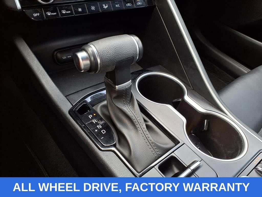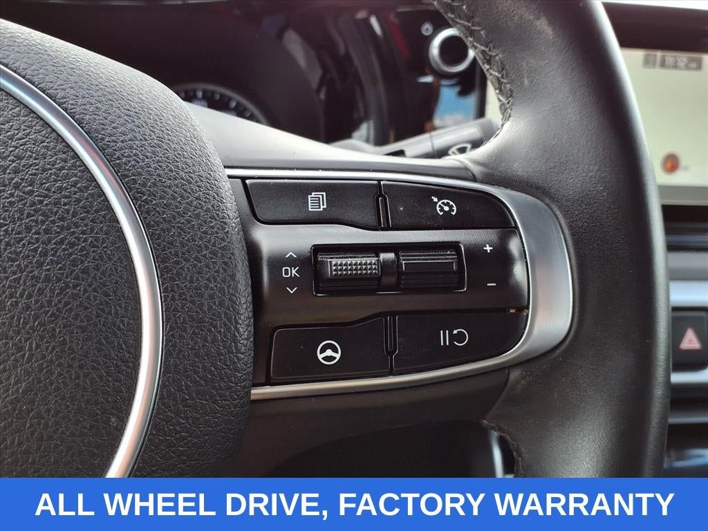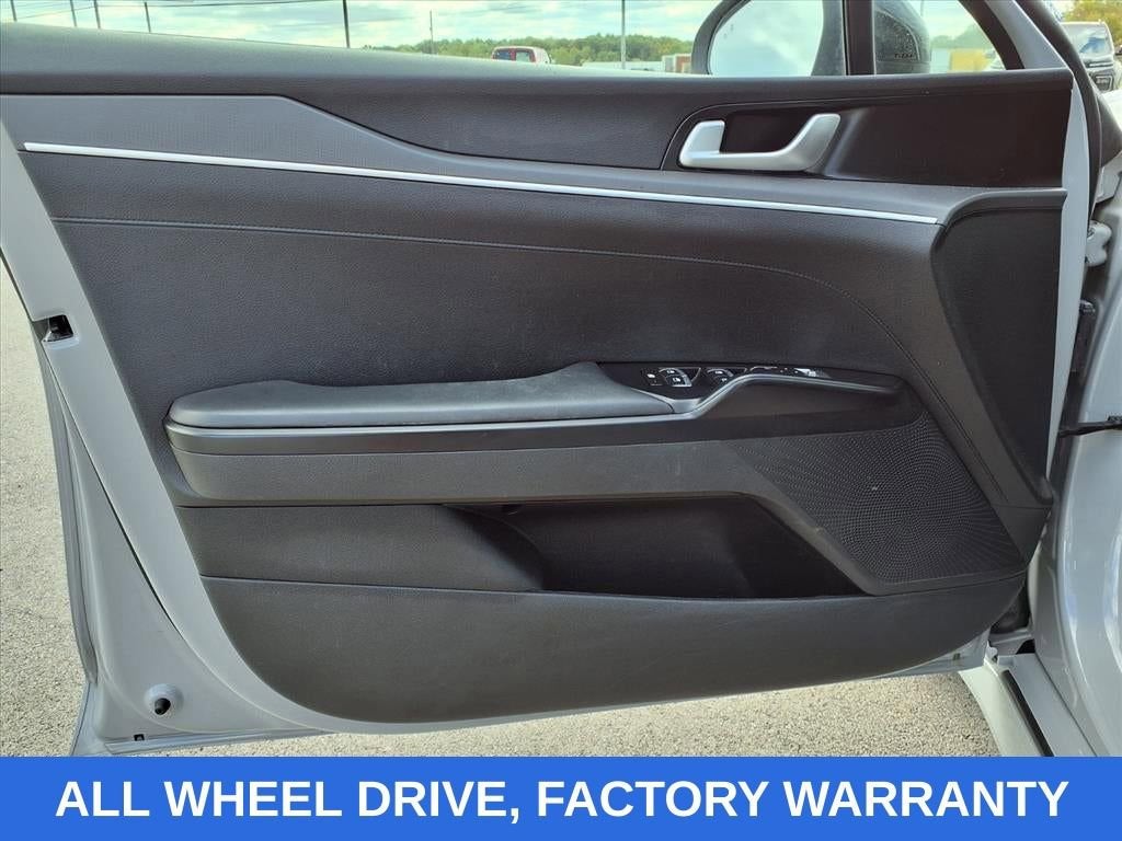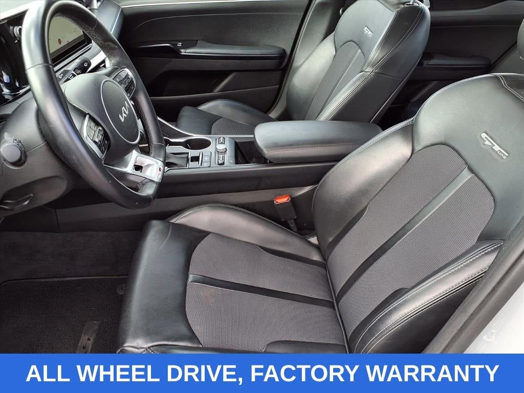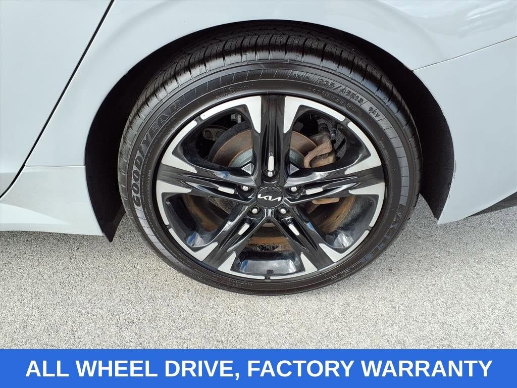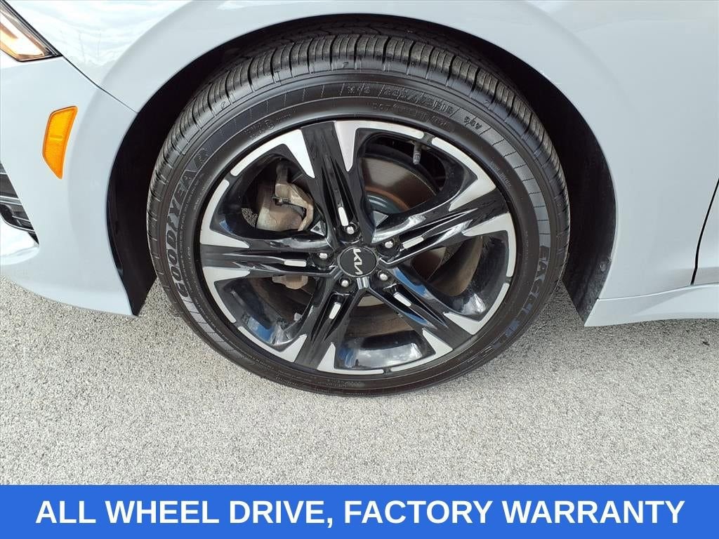 Wolf Gray 2022 Kia K5 GT-Line AWD 8-Speed Automatic I4 NO ACCIDENTS, FACTORY WARRANTY, NAVIGATION, AWD, REAR CROSS TRAFFIC ALERT, FRONT COLLISION MITIGATION, LANE KEEP ASSIST, REMOTE START, ANDROID/APPLE CARPLAY, POWER LOCKS & WINDOWS, TILT & CRUISE, KEYLESS ENTRY & START, POWER SEAT, 4-Wheel Disc Brakes, 6 Speakers, ABS brakes, Air Conditioning, Alloy wheels, AM/FM radio: SiriusXM, Apple CarPlay & Android Auto, Auto High-beam Headlights, Automatic temperature control, Brake assist, Bumpers: body-color, Cargo Tray, Carpeted Floor Mats, Cloth/Leatherette Seat Trim, Delay-off headlights, Driver door bin, Driver vanity mirror, Dual front impact airbags, Dual front side impact airbags, Electronic Stability Control, Four wheel independent suspension, Front anti-roll bar, Front Bucket Seats, Front Center Armrest, Front dual zone A/C, Front fog lights, Front reading lights, Fully automatic headlights, Heated door mirrors, Heated Front Bucket Seats, Heated front seats, Illuminated entry, Knee airbag, Low tire pressure warning, Navigation System, Occupant sensing airbag, Outside temperature display, Overhead airbag, Overhead console, Panic alarm, Passenger door bin, Passenger vanity mirror, Power door mirrors, Power driver seat, Power steering, Power windows, Radio data system, Radio: AM/FM/MP3 Audio System, Rear anti-roll bar, Rear seat center armrest, Rear side impact airbag, Rear window defroster, Remote keyless entry, Security system, Speed control, Speed-sensing steering, Split folding rear seat, Spoiler, Sport steering wheel, Steering wheel mounted audio controls, Tachometer, Telescoping steering wheel, Tilt steering wheel, Traction control, Trip computer, Turn signal indicator mirrors, Variably intermittent wipers, Wheels: 7.5J x 18 Gloss Black Machined Finish Alloy.