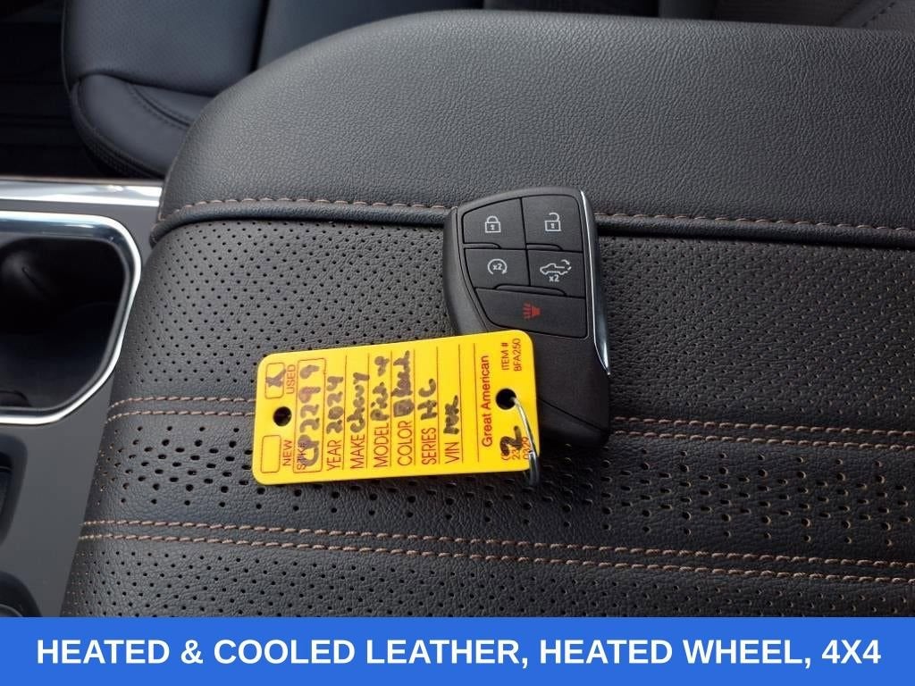 Black 2024 Chevrolet Silverado 1500 High Country 4WD 10-Speed Automatic EcoTec3 5.3L V8 ONE OWNER, NO ACCIDENTS, FACTORY WARRANTY, HEATED REAR SEATS, HEATED & COOLED LEATHER, HEATED STEERING WHEEL, NAVIGATION, BLIND SPOT MONITORS, MOONROOF, CLASS IV HITCH, 4X4, BOSE SOUND SYSTEM, MEMORY SEATS, EZ LIFT TAILGATE, TRAILERING PACKAGE, REAR CROSS TRAFFIC ALERT, FRONT COLLISION MITIGATION, LANE KEEP ASSIST, POWER LIFTGATE, REMOTE START, ANDROID/APPLE CARPLAY, POWER LOCKS & WINDOWS, TILT & CRUISE, KEYLESS ENTRY & START, POWER SEAT, 10-Speed Automatic, 4WD, Black Leather, 10-Way Power Driver Seat w/Lumbar, 10-Way Power Passenger Seat Adjuster w/Lumbar, 12.3 Multicolor Reconfigurable Digital Display, 120-Volt Bed Mounted Power Outlet, 120-Volt Interior Power Outlet, 170 Amp Alternator, 2 USB Data Ports, 2nd Row Heated Outboard Seats, 3.23 Rear Axle Ratio, 4-Wheel Disc Brakes, 7 Speakers, ABS brakes, Adaptive Cruise Control, Adaptive Ride Control Suspension, Air Conditioning, All-Weather Floor Liner (LPO), Alloy wheels, AM/FM radio: SiriusXM with 360L, Auto High-beam Headlights, Auto-dimming door mirrors, Auto-Dimming Inside Rear-View Mirror, Auto-dimming Rear-View mirror, Auto-Locking Rear Differential, Automatic temperature control, Bed View Camera, Bluetooth® For Phone, Body-Color Painted Mirror Caps, Bodyside moldings, Brake assist, Bumpers: body-color, Chevrolet Connected Access Capable, Chevytec Spray-On Black Bedliner, Chrome Assist Steps, Chrome Mirror Caps, Chrome Recovery Hooks, Color-Keyed Carpeting Floor Covering, Compass, Deep-Tinted Glass, Delay-off headlights, Driver door bin, Driver Memory, Driver vanity mirror, Dual Exhaust w/Polished Outlets, Dual front impact airbags, Dual front side impact airbags, Dual Rear USB Ports (Charge Only), Electric Rear-Window Defogger, Electrical Steering Column Lock, Electronic Stability Control, Electronic Transmission Range Selector Shifter, Enhanced Automatic Emergency Braking, EZ Lift Power Lock & Release Tailgate, Floor Mounted Center Console, Following Distance Indicator, Forward Collision Alert, Front anti-roll bar, Front Bucket Seats, Front Carpeted Floor Mats, Front Center Armrest, Front dual zone A/C, Front fog lights, Front LED Fog Lamps, Front Pedestrian Braking, Front Rain-Sensing Wipers, Front reading lights, Front wheel independent suspension, Fully automatic headlights, Garage door transmitter, Genuine wood console insert, Genuine wood dashboard insert, Genuine wood door panel insert, HD Surround Vision, Heated door mirrors, Heated Driver & Front Outboard Passenger Seats, Heated front seats, Heated rear seats, Heated Steering Wheel, Heated steering wheel, High Capacity Suspension Package, High Country Premium Package, Hitch Guidance, Hitch Guidance w/Hitch View, Illuminated entry, In-Vehicle Trailering System App, Integrated Trailer Brake Controller, IntelliBeam Automatic High Beam On/Off, Keyless Open & Start, Lane Keep Assist w/Lane Departure Warning, LED Cargo Area Lighting, Low tire pressure warning, Memory seat, Multi-Flex Tailgate, Occupant sensing airbag, OnStar & Chevrolet Connected Services Capable, Outside Heated Power-Adjustable Mirrors, Outside temperature display, Overhead airbag, Overhead console, Panic alarm, Passenger door bin, Passenger vanity mirror, Perforated Leather Seat Trim, Perimeter Lighting, Power door mirrors, Power driver seat, Power Front Passenger Windows w/Express Up/Down, Power Front Windows w/Driver Express Up/Down, Power passenger seat, Power Rear Windows w/Express Down, Power Sliding Rear Window w/Rear Defogger, Power steering, Power Sunroof, Power Tailgate, Power Tilt & Telescoping Steering Column, Power windows, Power-Retractable Assist Steps, Preferred Equipment Group 3LZ, Premium audio system: Chevrolet Infotainment 3 Premium, Premium Bose 7-Speaker Sound System, Pwr-Adjustable Vertical Trailering Outside Mirrors, Radio data system, Radio: Chevrolet Infotainment 3 Premium System, Rain